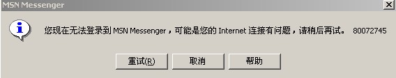 经过反复测试,MSN messenger无法正常登录,数名用户反应均出现如下提示框:
